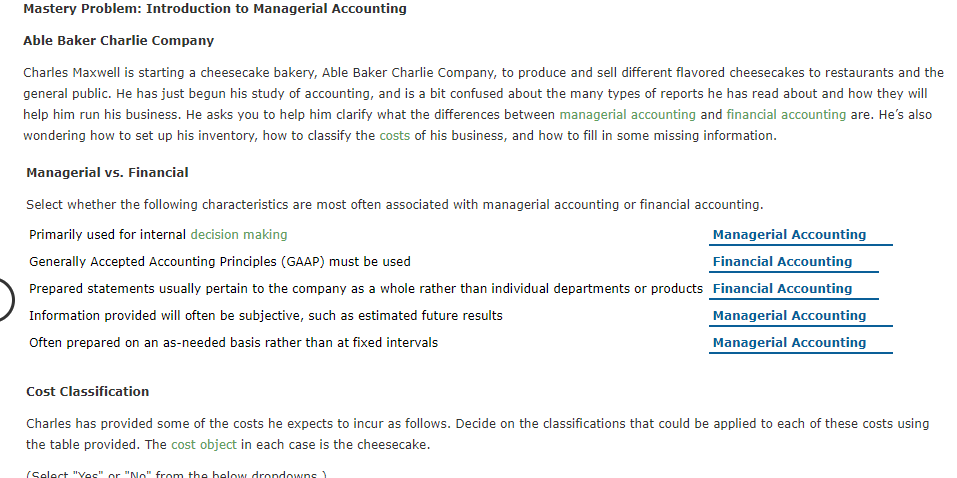 Solved Mastery Problem Introduction To Managerial Chegg Com